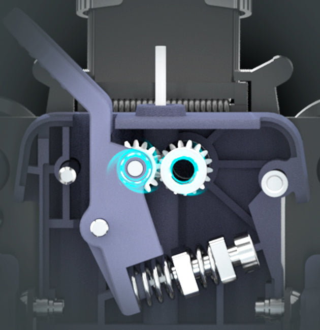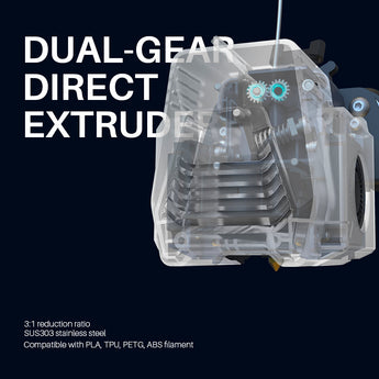 Der Doppelzahn-Direkt-Extruder bietet einen Motor mit dreifachem Extrusionsdrehmoment und verstärkter Übersetzungskraft. Gemeinsam mit dem Titanlegierungs-Hotend ermöglicht er mühelosem Filamentvorschub sowie besonders stabiles und präzises Drucken.