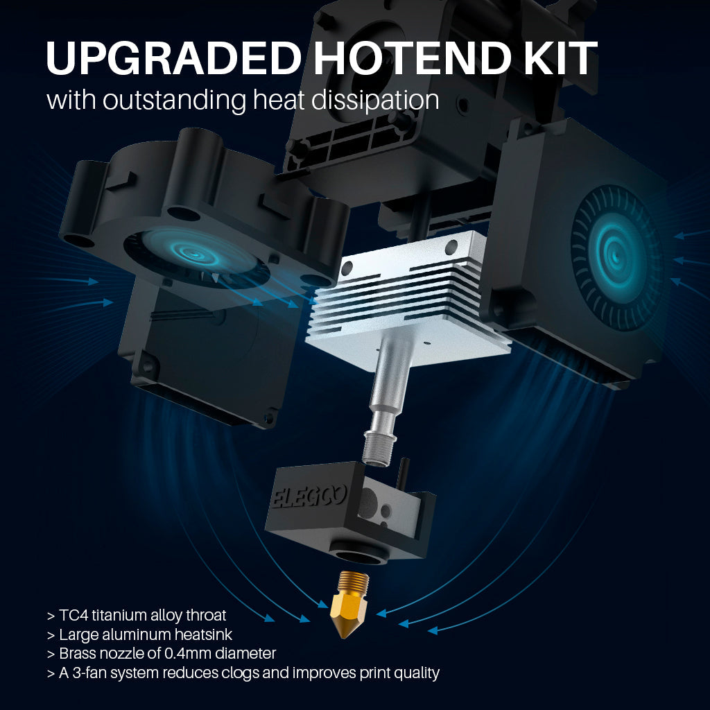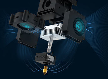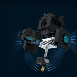 Die Lüfter auf beiden Seiten des Druckkopfs sorgen für eine 360-Grad-Wärmeableitung und kühlen die gedruckten Schichten schnell ab.