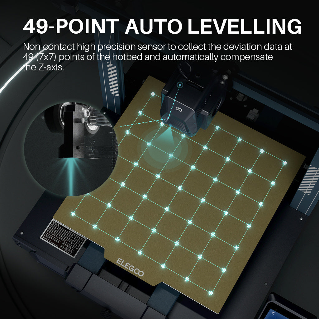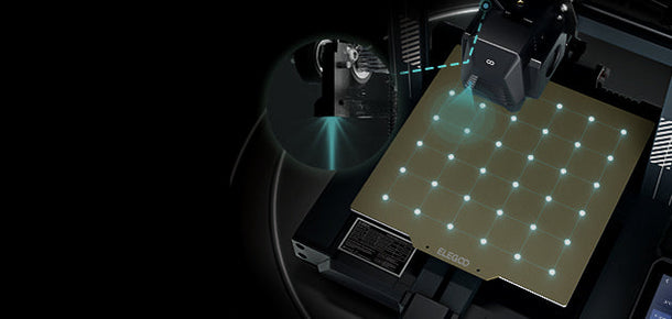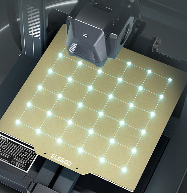 Das 36-Punkte-Nivelliersystem verwendet einen berührungslosen Sensor, um den Abstand zwischen Düse und Heizbett in 36 Bereichen der Druckplattform präzise zu messen. Es kalibriert und kompensiert automatisch alle Unregelmäßigkeiten oder Unebenheiten des Heizbetts, um die endgültige Druckqualität zu verbessern.