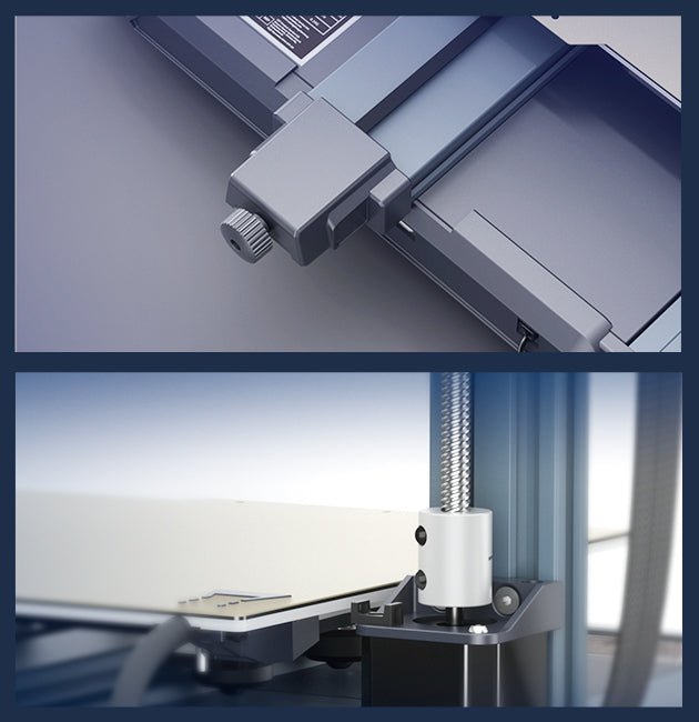 Der XY-Achsen-Riemenspanner ist bequemer zu justieren, da die Riemenspannung durch einfaches Drehen des Hand-Drehknopfs eingestellt werden kann. Zudem wurde das Y-Achsen-Profil verbreitert, um die Druckplattform stabiler zu machen.