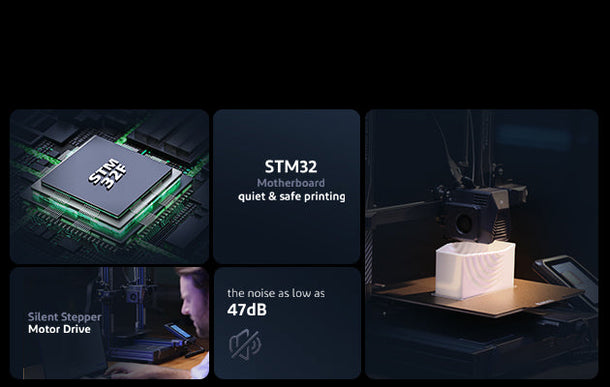Die gesamte Maschine nutzt ein STM-32-Bit-Hauptboard mit Silent-Treibern und eine optimierte Kühlstruktur für die Düse, wodurch der Geräuschpegel auf unter 50 dB sinkt – vergleichbar mit einem leisen Flüstern.