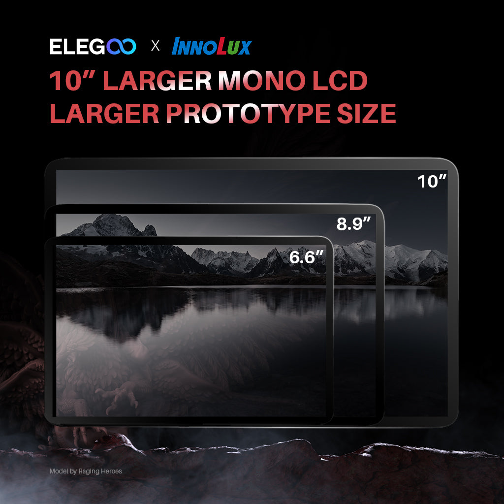 • Gemeinsam von ELEGOO und INNOLUX entwickelt, ermöglicht das 10-Zoll-8K-LCD mit einer Auflösung von 7680 × 4320 das Drucken ultrafeiner 3D-Modelle mit Mikrometer-Genauigkeit; die Aushärtungszeit beträgt nur 1–3 s pro Schicht.