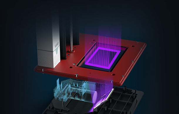 Der ELEGOO-DLP-Projektor ist mit einer LG-Hochleistungs-LED-Beleuchtung und einem 13-lagigen Linsensystem ausgestattet. Die Lichtintensität beträgt bis zu 4 mW/cm², die Lichtgleichmäßigkeit bis zu 95 %. Zusammen mit einem 95 % lichtdurchlässigen Temperglas werden Lichtstreuung und Lichtversprengung minimiert. Das Ergebnis ist eine höhere Druckgenauigkeit als bei LCD-3D-Druckern mit gleicher Auflösung.