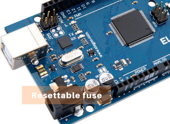 The ATmega2560 on the Elegoo Mega 2560 comes preprogrammed with a bootloader that allows you to upload new code to it without the use of an external hardware programmer. The Mega 2560 has a re-settable fuse that protects your computer's USB ports from shorts and over-current. Although most computers provide their own internal protection, the fuse provides an extra layer of protection. If more than 500 MA is applied to the USB port, the fuse will automatically break the connection until the short or overload is removed.
