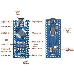 The Nano is a small, complete, and breadboard-friendly board based on the ATmega328 (Arduino Nano 3.x). It has more or less the same functionality of the official Arduino/Genuino UNO, but in a different package. It lacks only a DC power jack, and works with a Mini-B USB cable instead of a standard one.