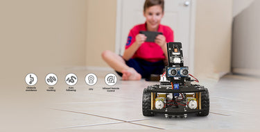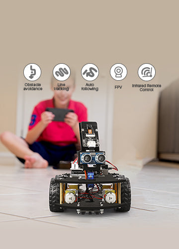 Complete Package: Contains 24 kinds of module parts including obstacle avoidance, line tracking module, infrared remote control and also you can control it via phone and tablets of Android and iOS system, etc.