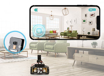 FPV control experience and using Wi-Fi for Video transmission and control of the robot car’s movement. Imagine that you are driving a car. Please note that the horizontal control range is 0-180°, you cannot control the camera vertically.