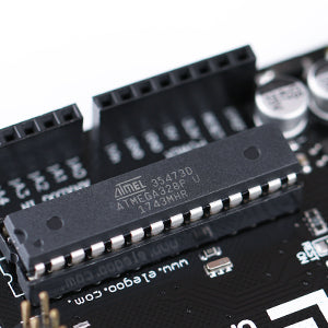 It use the same ATmega328 as official Arduino UNO R3 board. The ATmega328 on the UNO R3 comes preprogrammed with a bootloader that allows you to upload new code to it without the use of an external hardware programmer.
