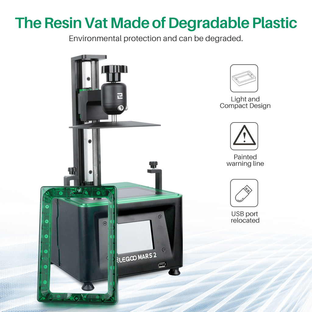 Robuste Bauweise  Die CNC-gefräste Aluminium­struktur macht den Mars 2 besonders stabil. Die neu entwickelte, sandgestrahlte Bauplatte bietet deutlich bessere Haftung und sorgt für konstante Druckerfolge. Eingebaute Aktivkohle filtert Harzdämpfe und sorgt für ein angenehmes Arbeitsumfeld.