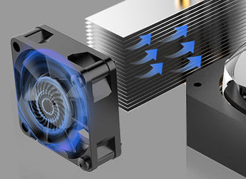 Das neue Wärmeableitungssystem umfasst doppelte wärmeleitende Kupfer-Heatpipes und einen Lüfter für schnellere Belüftung und effiziente Kühlung; der Lichtverlust beträgt nach 6000 Stunden Dauerbetrieb weniger als 5 %.