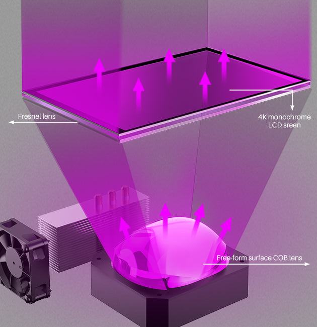 Die aufgerüstete COB-UV-LED-Quelle mit 36 hochintegrierten Leuchtdioden arbeitet perfekt mit der Fresnel-Linse zusammen und sorgt für eine gleichmäßige Lichtstärkenverteilung über den gesamten Bildschirm bei konstanter Präzision.