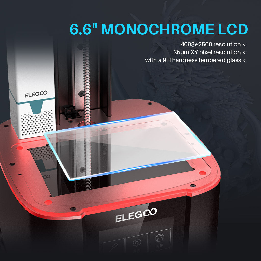 Der ELEGOO Mars 3 Pro verfügt über einen 6,6 Zoll großen 4K-Mono-LCD-Bildschirm mit einer Auflösung von 4098*2560 und einer XY-Auflösung von 35 μm, der Drucke mit feinen Details und hoher Präzision liefert, die FDM-Drucker in puncto Qualität und Geschwindigkeit weit übertreffen.