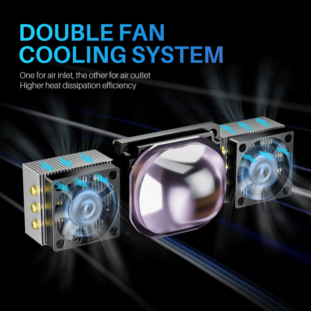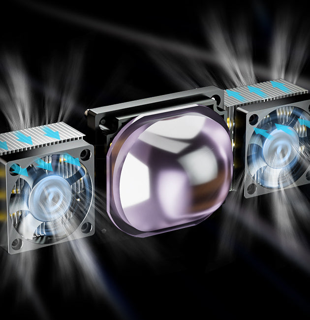 Die doppelte Lüfterkonstruktion kühlt schneller und effizienter, wodurch sich die Lebensdauer des MARS 4 MAX deutlich verlängert.