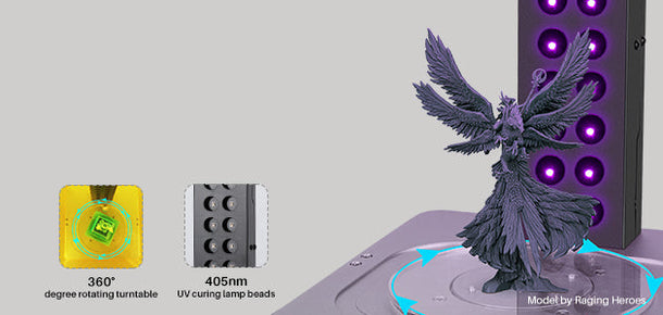 Mit dem 360-Grad-Drehtisch können Sie jedes Detail des Modells schnell und gleichmäßig aushärten um ein perfektes Finish aus allen Blickwinkeln zu erzielen.